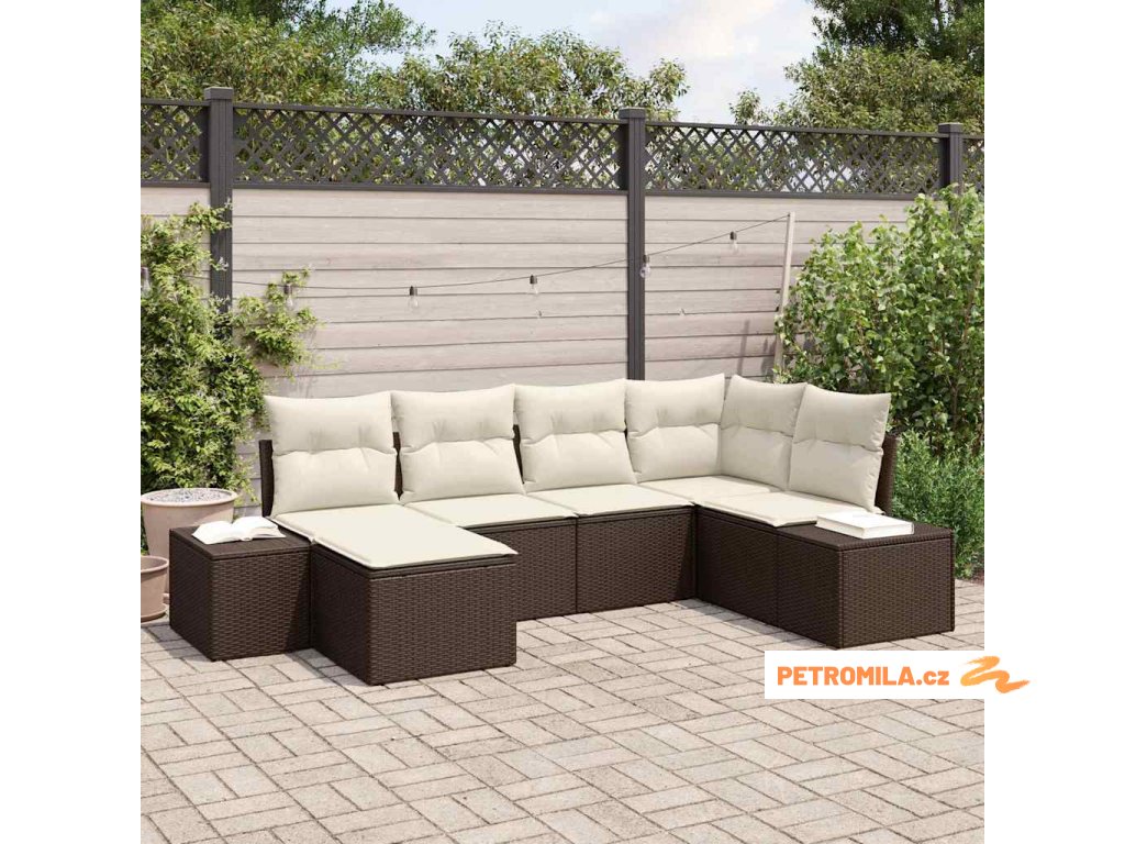 Sada zahradních pohovek s polštářem 7 pcs Hnědá Poly ratan