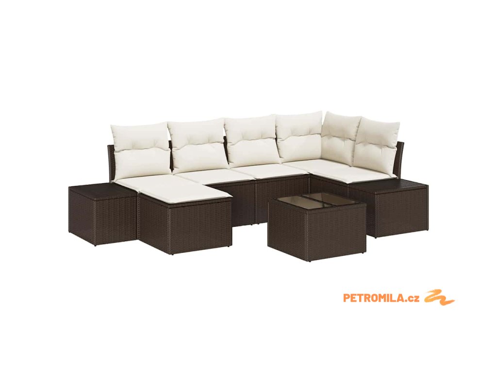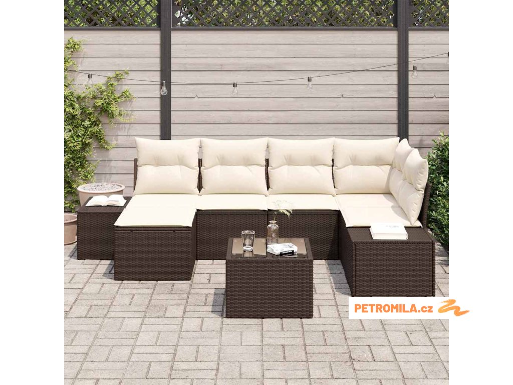 Sada zahradních pohovek 6 pcs Hnědá a krémová polyratan