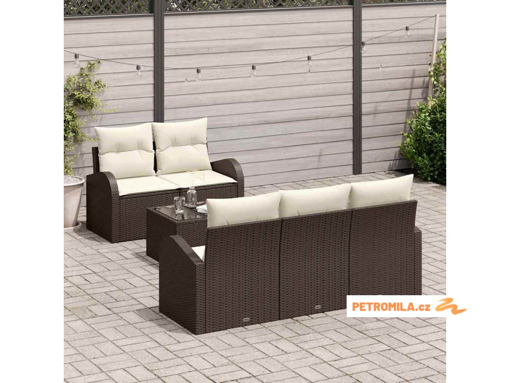 Sada zahradních pohovek 6 pcs Hnědá a krémová polyratan