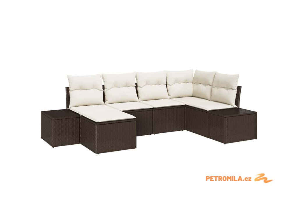 Sada zahradních pohovek 6 pcs Hnědá a krémová polyratan