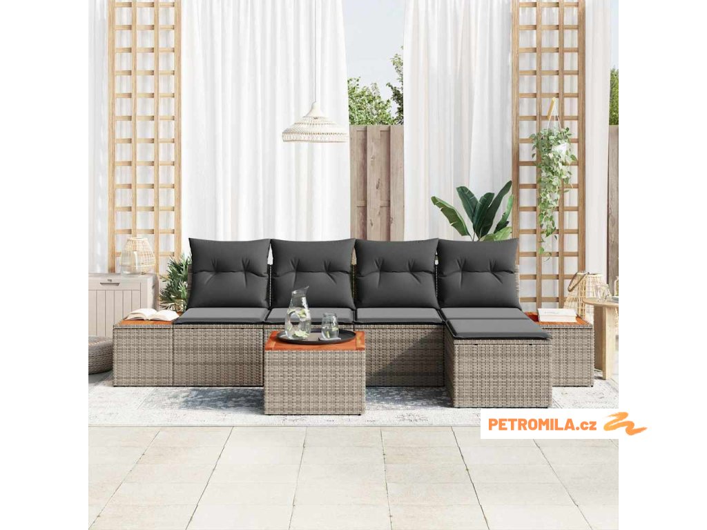 Sada zahradních pohovek 6 pcs Šedá 184 x 62 x 85 cm Poly ratan