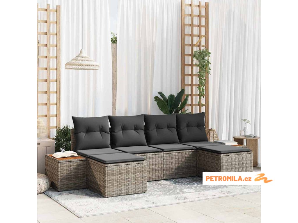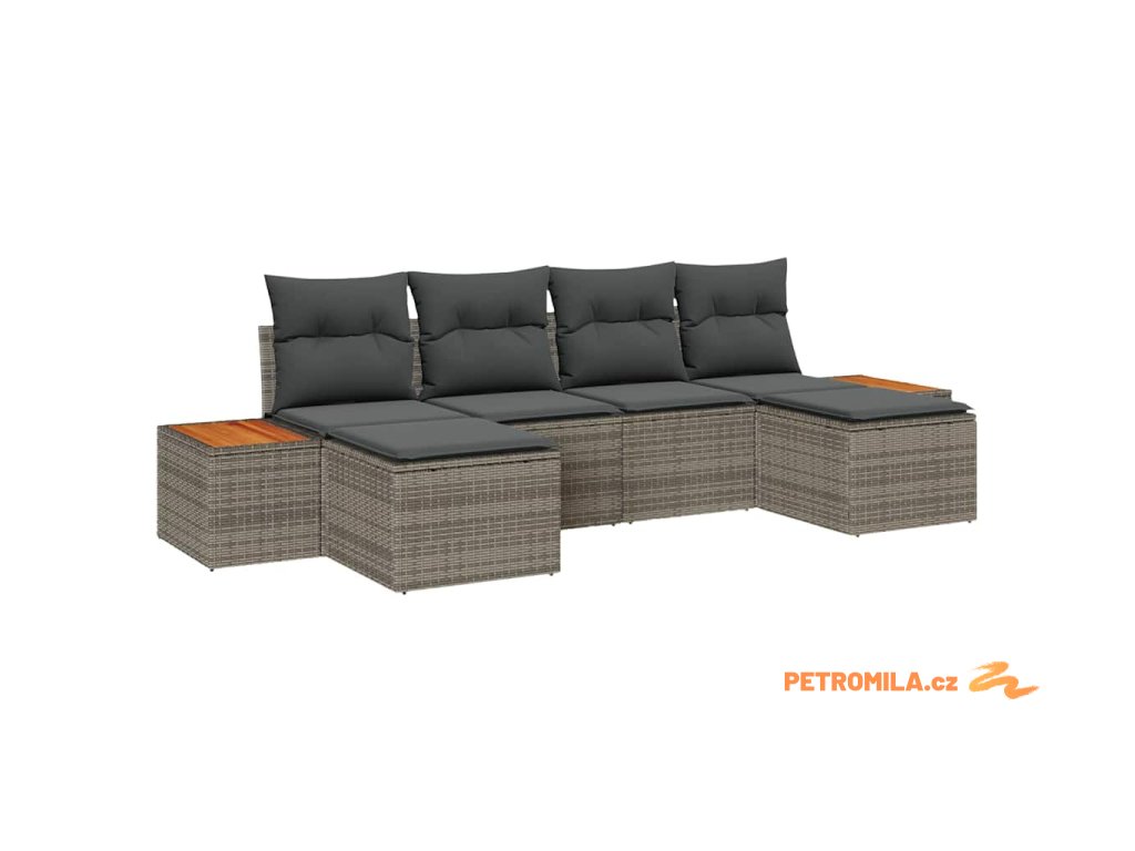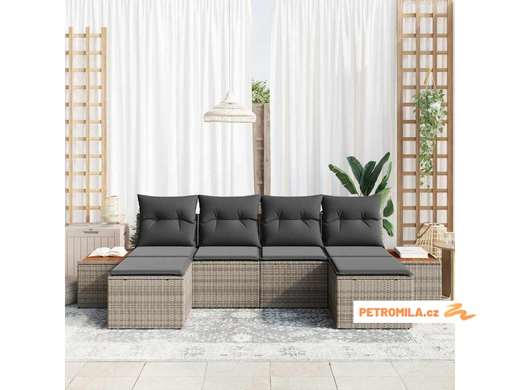 Sada zahradních pohovek 6 pcs Šedá 184 x 62 x 85 cm Poly ratan