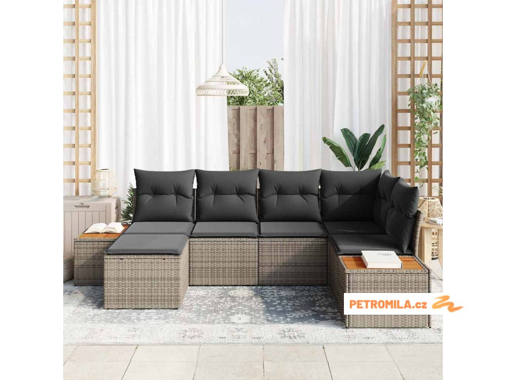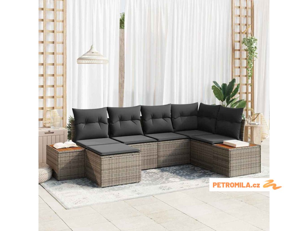 Sada zahradních pohovek 6 pcs Šedá 264 x 154 x 85 cm Poly ratan