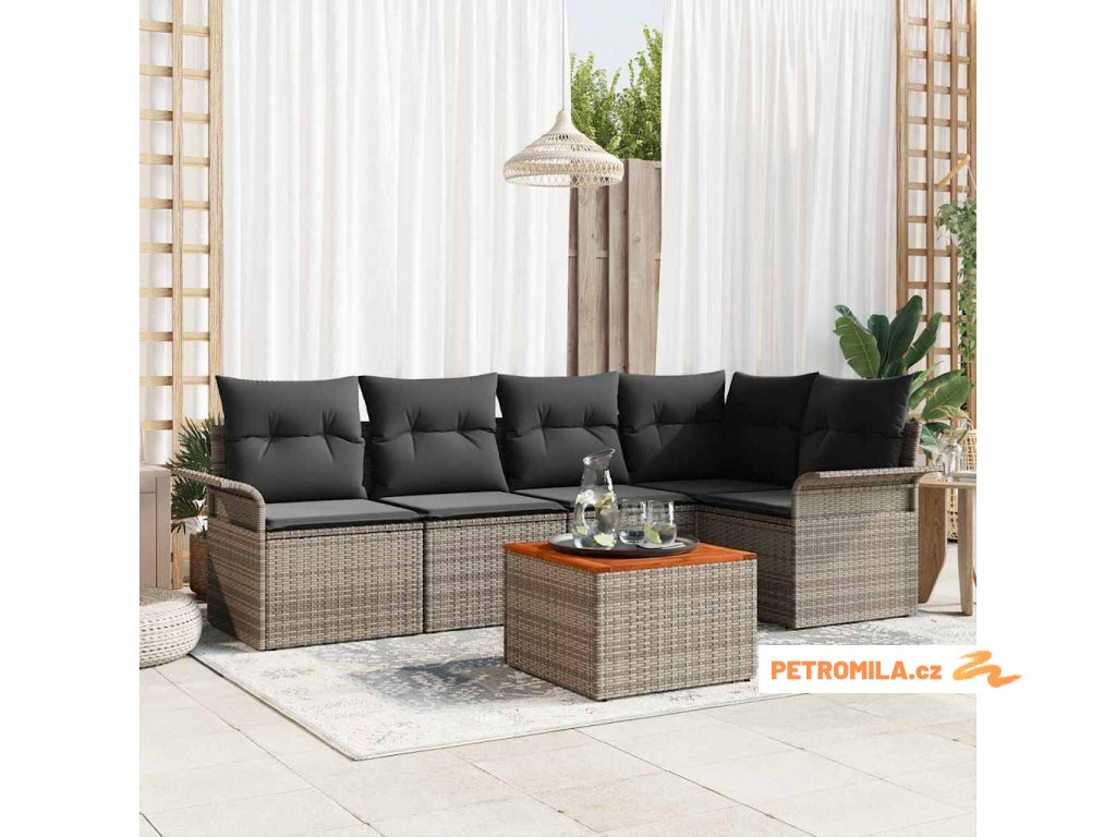 Sada zahradních pohovek 6 pcs Šedá Poly ratan