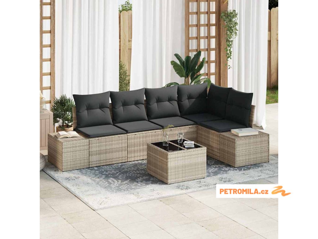 Sada zahradních pohovek s polštářem 7 pcs Béžová Poly ratan