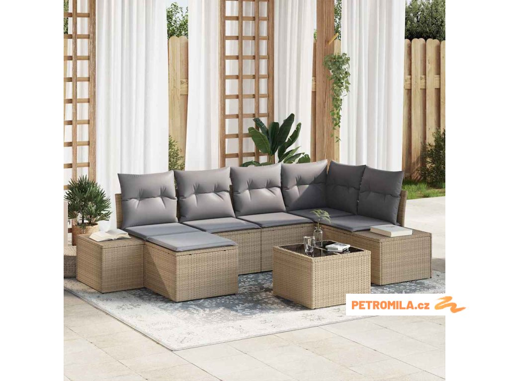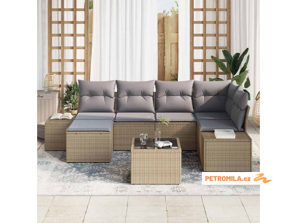 Sada zahradních pohovek s polštářem 7 pcs Béžová Poly ratan