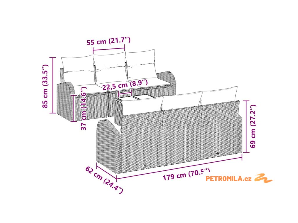 - 2 x Střední sedák: 55 x 62 x 69 cm (D x Š x V)
