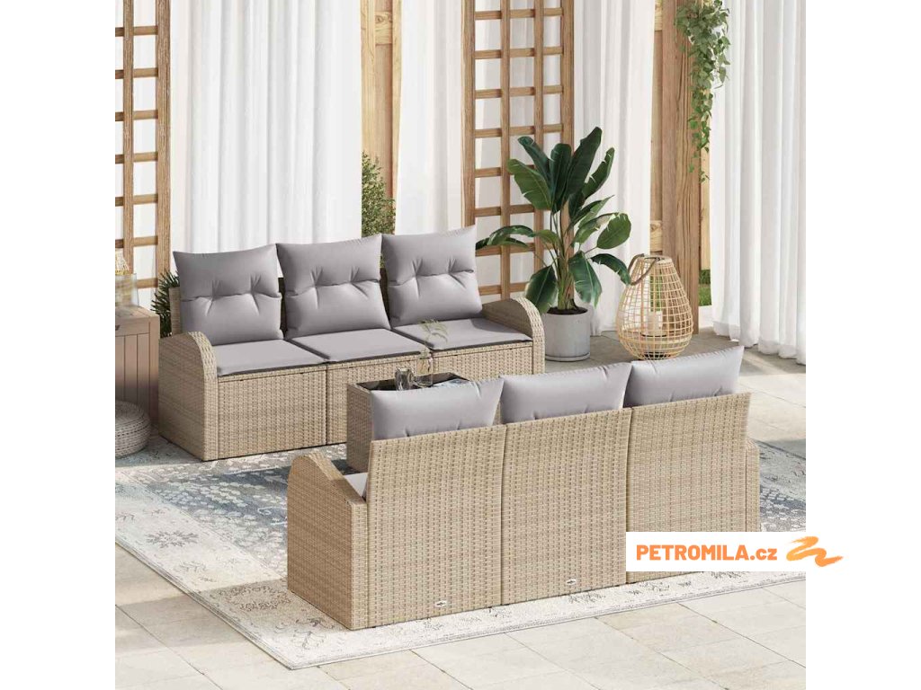 Sada zahradních pohovek 7 pcs Beige a šedá polyratan