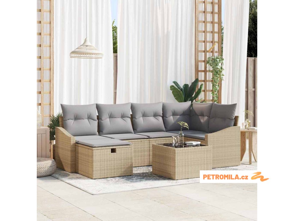 Sada zahradních pohovek 7 pcs Béžová 55 x 62 x 69 cm Poly ratan