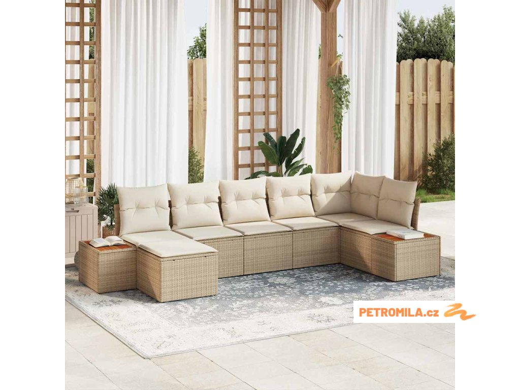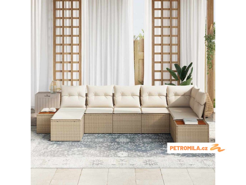 Sada zahradních pohovek 7 pcs Béžová a krémová Poly Ratan