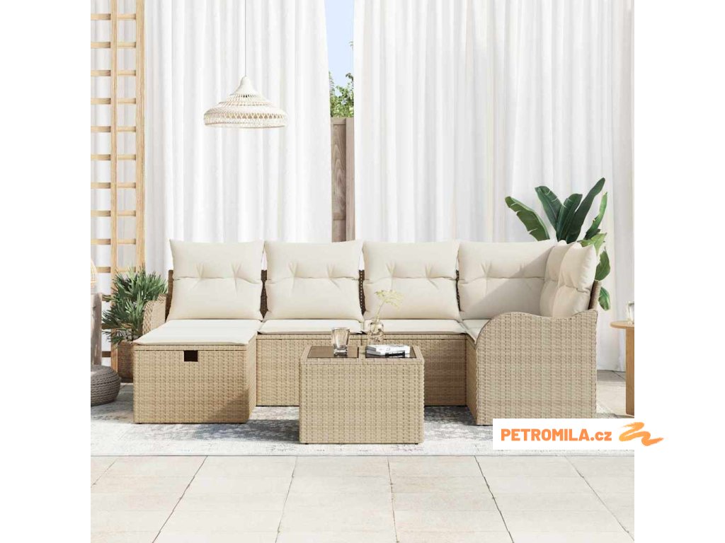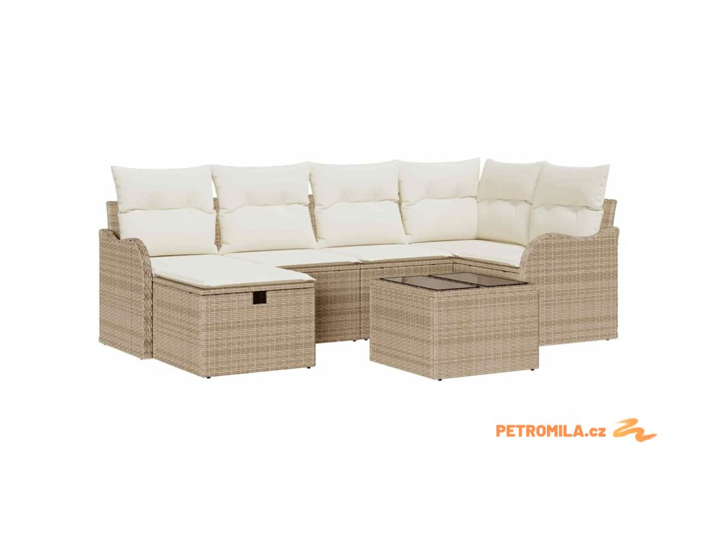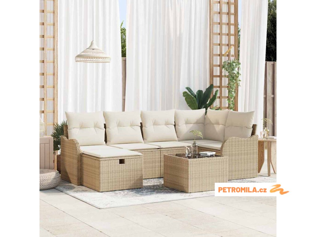 Sada zahradních pohovek 7 pcs béžová a krémová Poly ratan