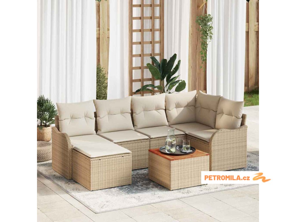 Sada zahradních pohovek 7 pcs Béžová a krémová polyratan