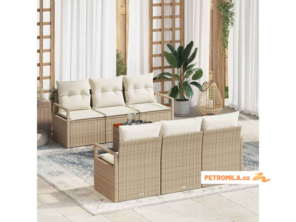 Sada zahradních pohovek 7 pcs Béžová a krémová polyratan