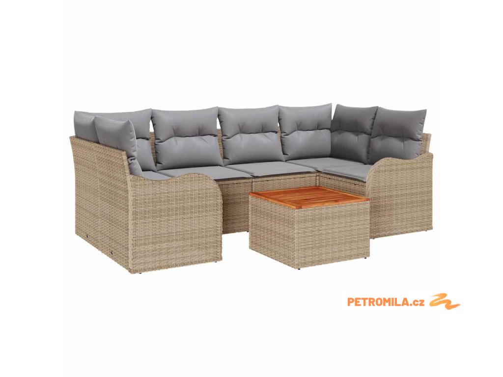 Sada zahradních pohovek s polštářem 7 pcs Béžová Poly ratan