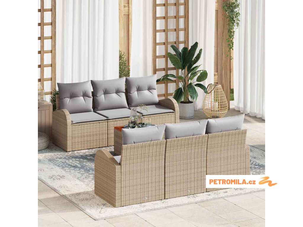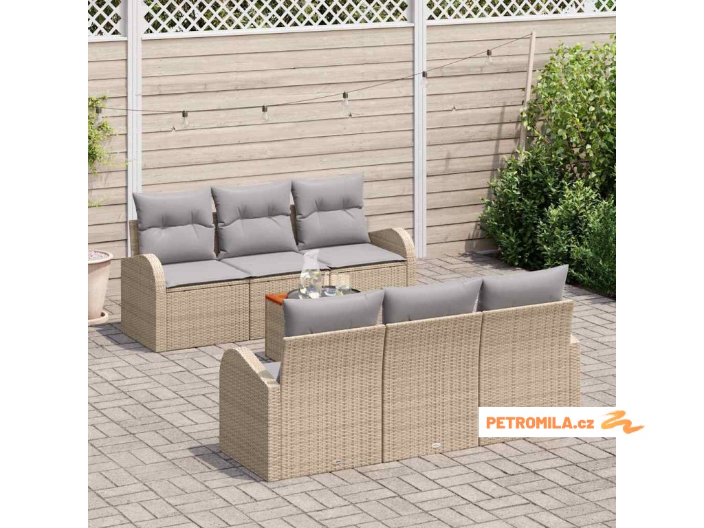 Sada zahradních pohovek s polštářem 8 pcs Béžová Poly ratan