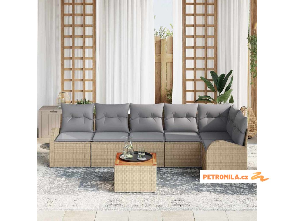 Sada zahradních pohovek s polštářem 7 pcs Béžová Poly ratan