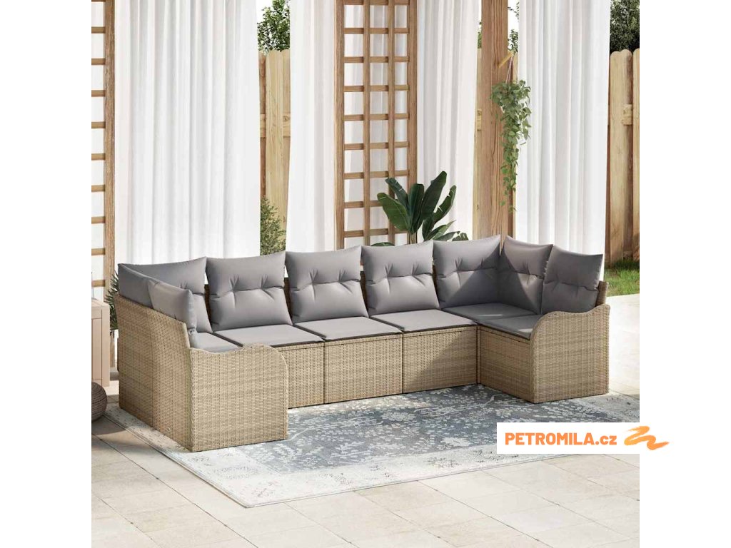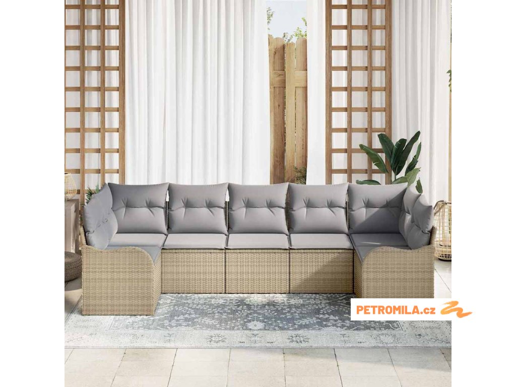 Sada zahradních pohovek s polštářem 8 pcs Béžová Poly ratan