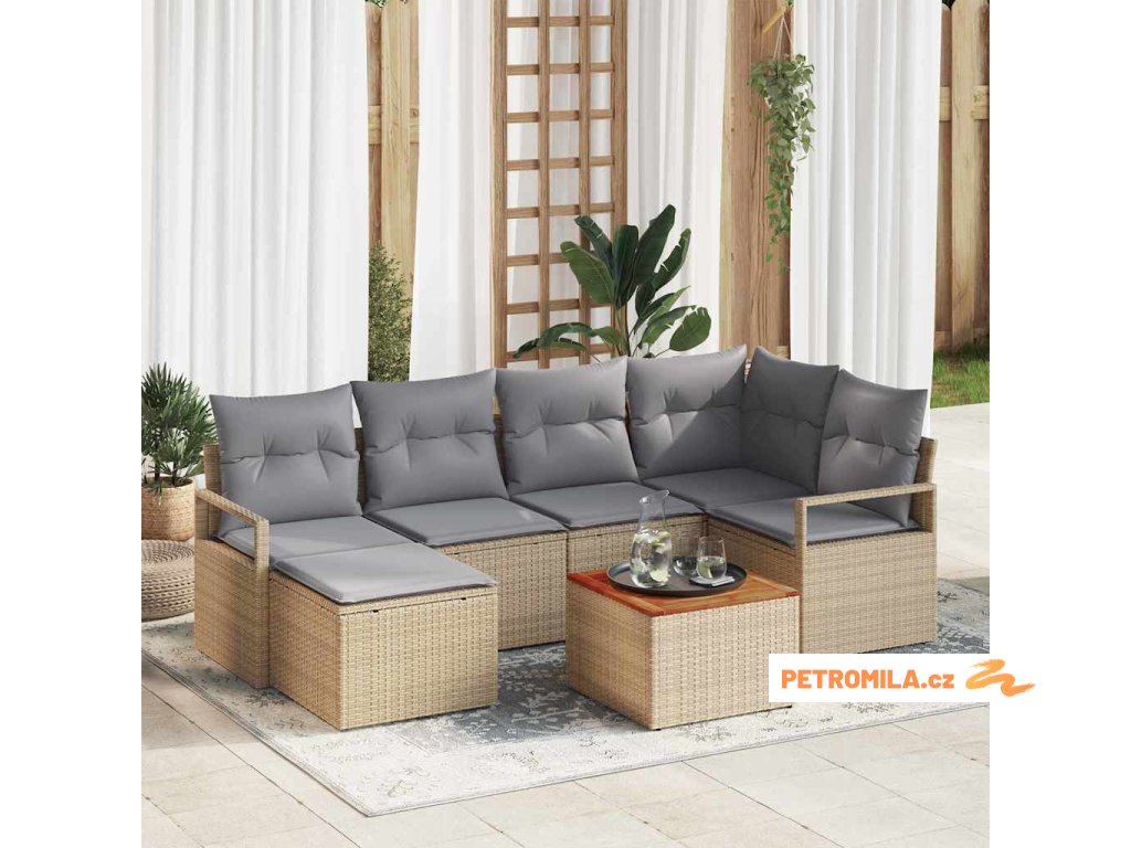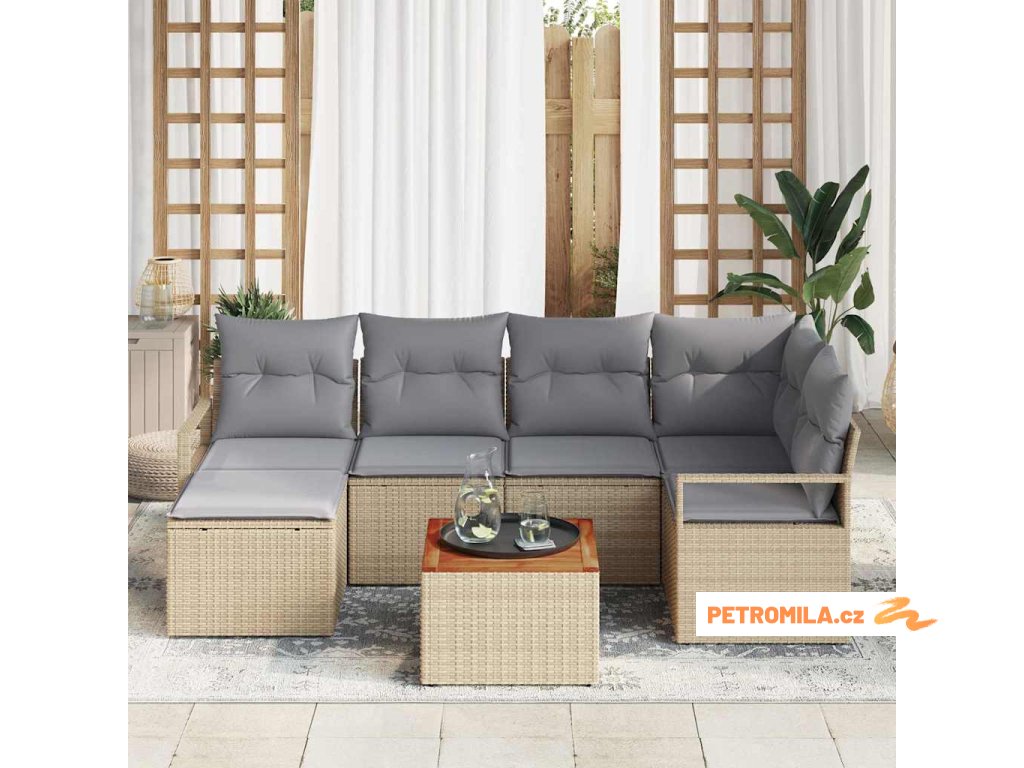 Sada zahradních pohovek 7 pcs Béžová a Světle šedá polyratan
