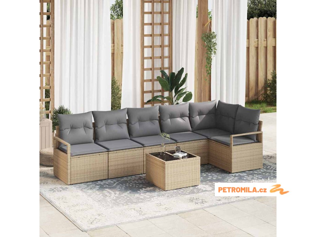 Sada zahradních pohovek 7 pcs Béžová a Světle šedá polyratan