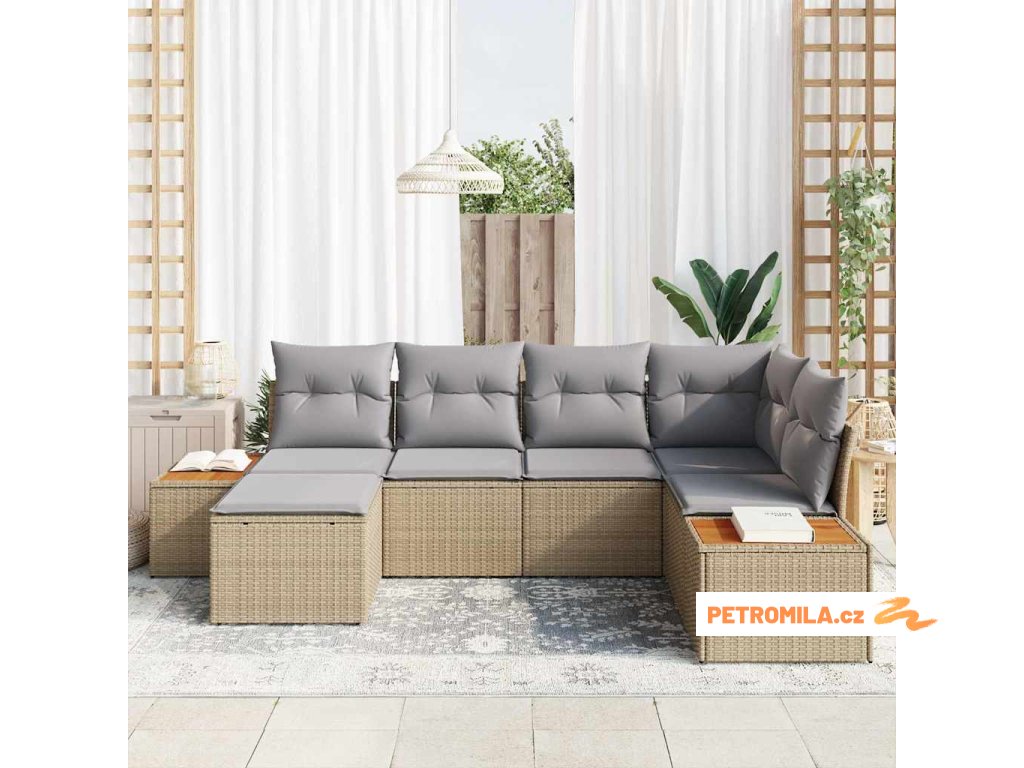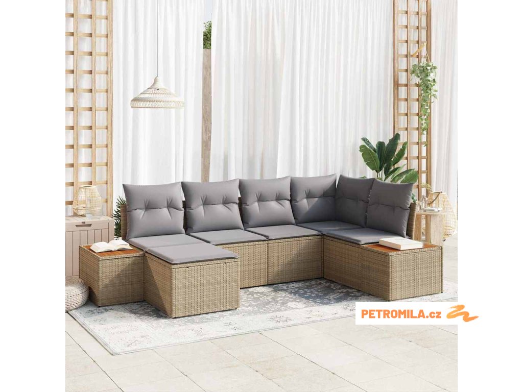 Sada zahradních pohovek 7 pcs Béžová a Světle šedá Polyratan