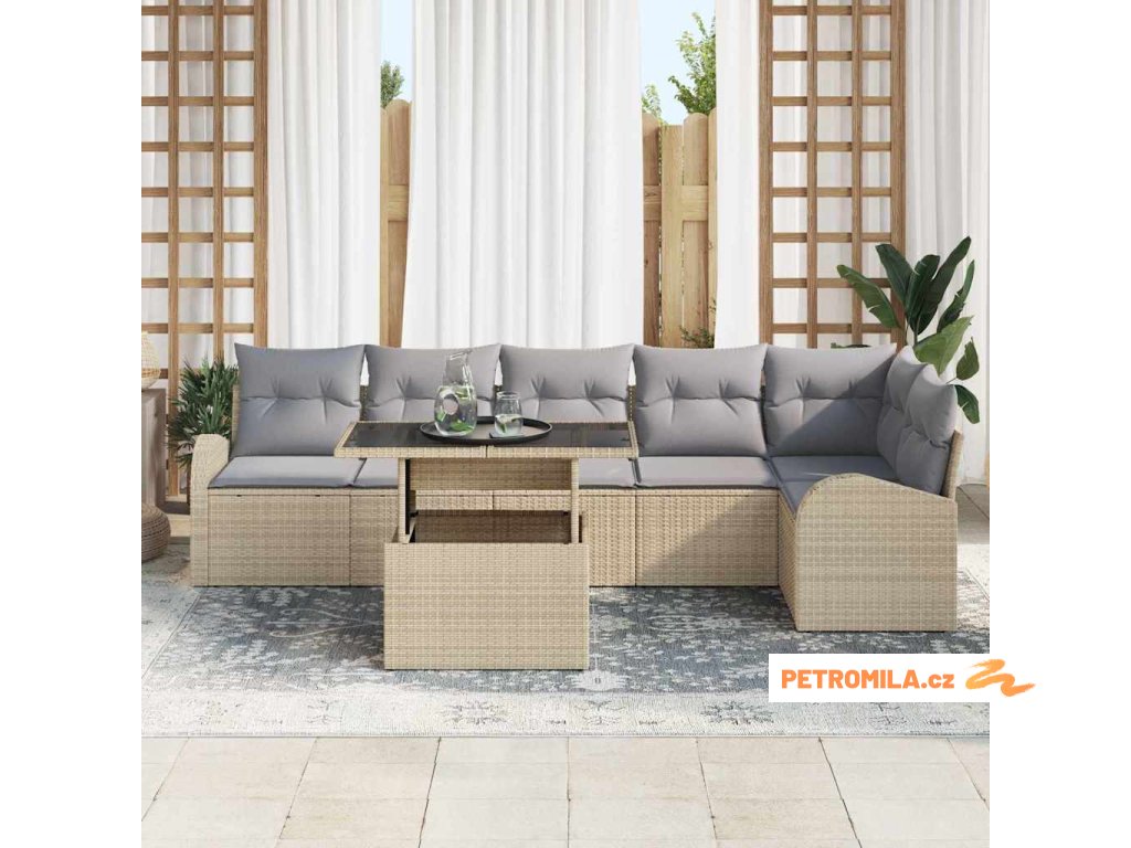 Sada zahradních pohovek 7 pcs béžová a světle šedá polyratan