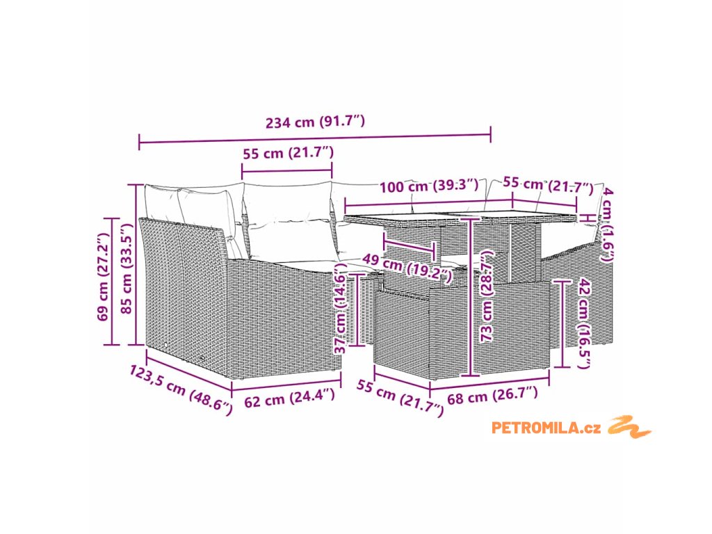 - Údržba a péče: Aby vám souprava dlouho vydržela, doporučuje se používat ochranný kryt, když ji nevyužíváte, a schovat polštáře dovnitř při špatném počasí. Pravidelná údržba udrží soupravu krásnou pro vaše venkovní obytné prostory.