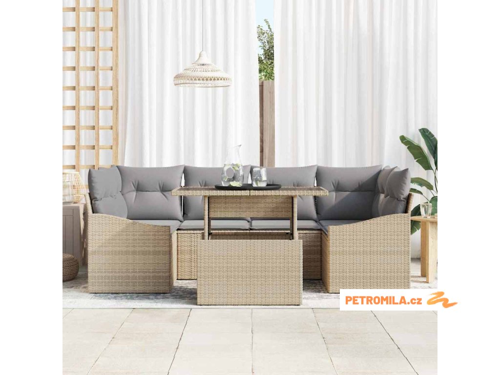 Sada zahradních pohovek 7 pcs béžová a světle šedá polyratan