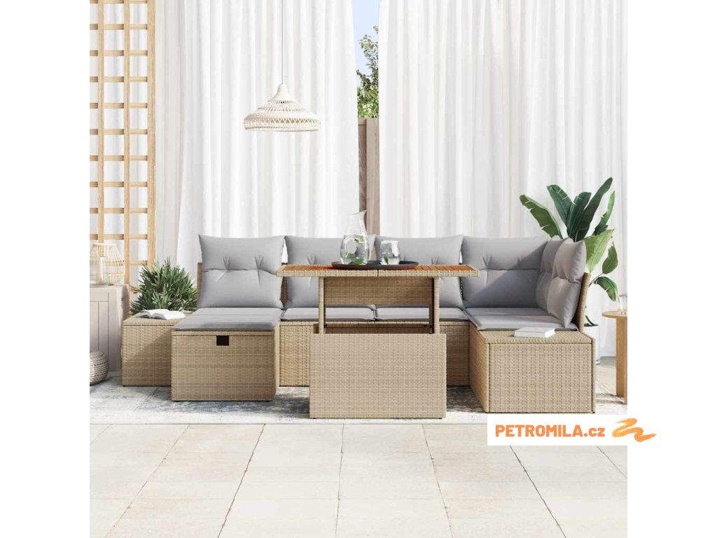 Sada zahradních pohovek s polštářem 8 pcs Béžová Poly ratan