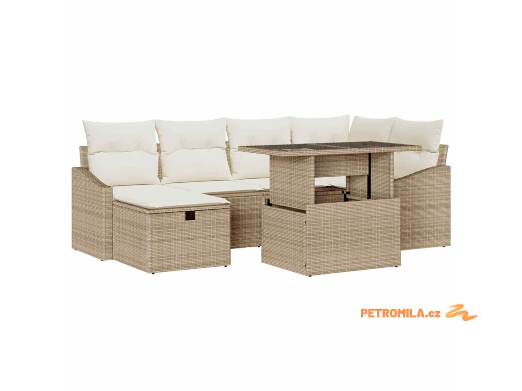 Sada zahradních pohovek 7 pcs Béžová polyratan