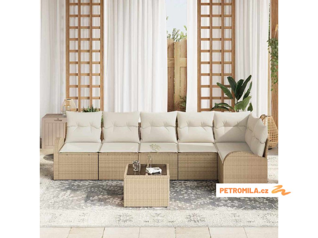 Sada zahradních pohovek 7 pcs Béžová polyratan
