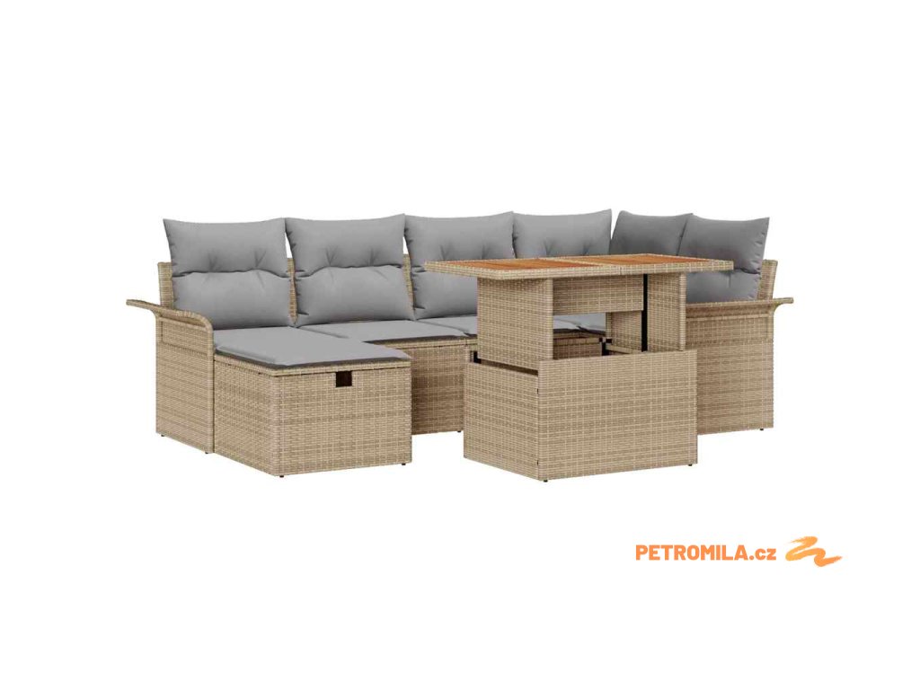 Sada zahradních pohovek s polštářem 7 pcs Béžová Poly ratan