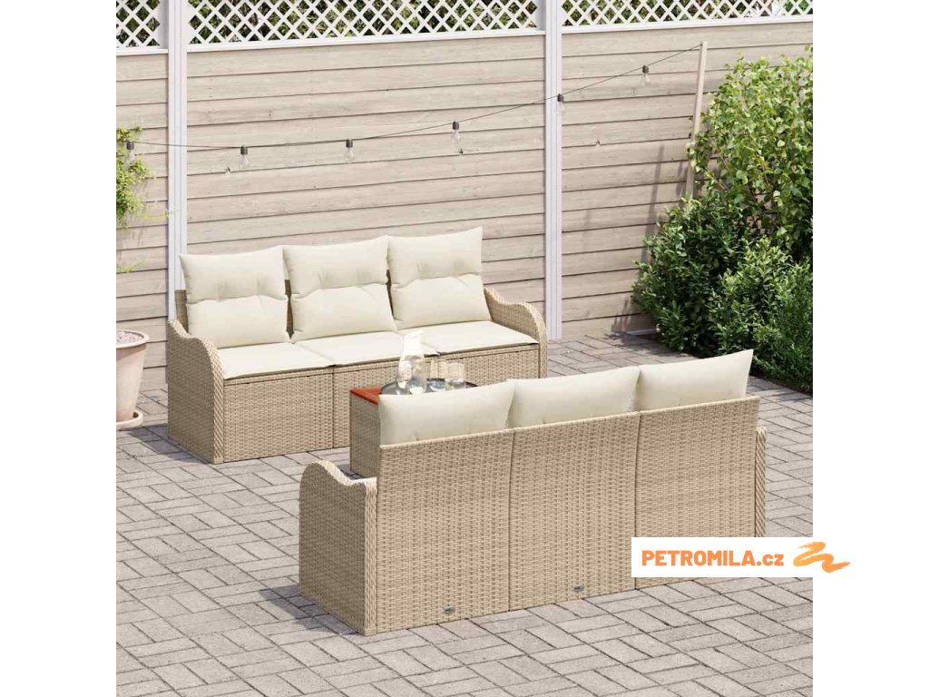 Sada zahradních pohovek s polštářem 6 pcs Béžová Poly ratan