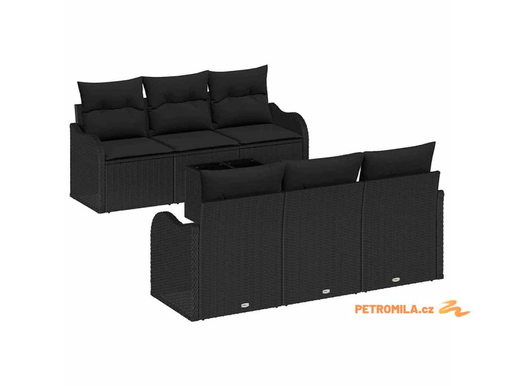 Sada zahradních pohovek 7 pcs Černá 55 x 55 x 37 cm Poly ratan