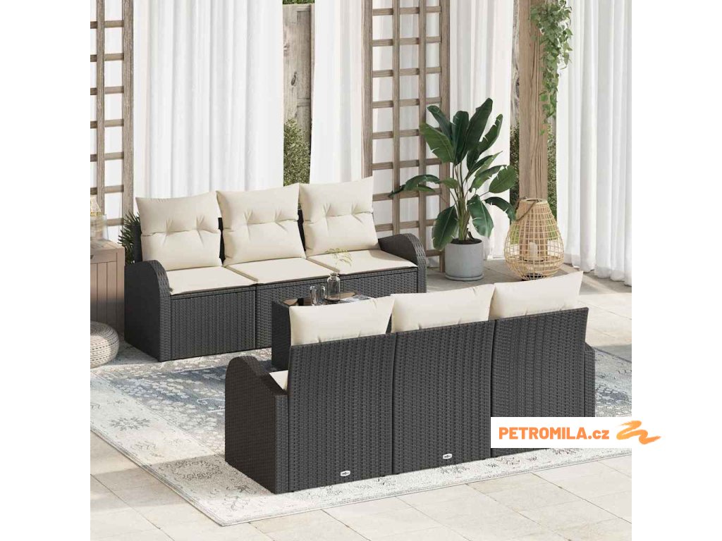Sada zahradních pohovek 7 pcs Černá 55 x 55 x 37 cm Poly ratan