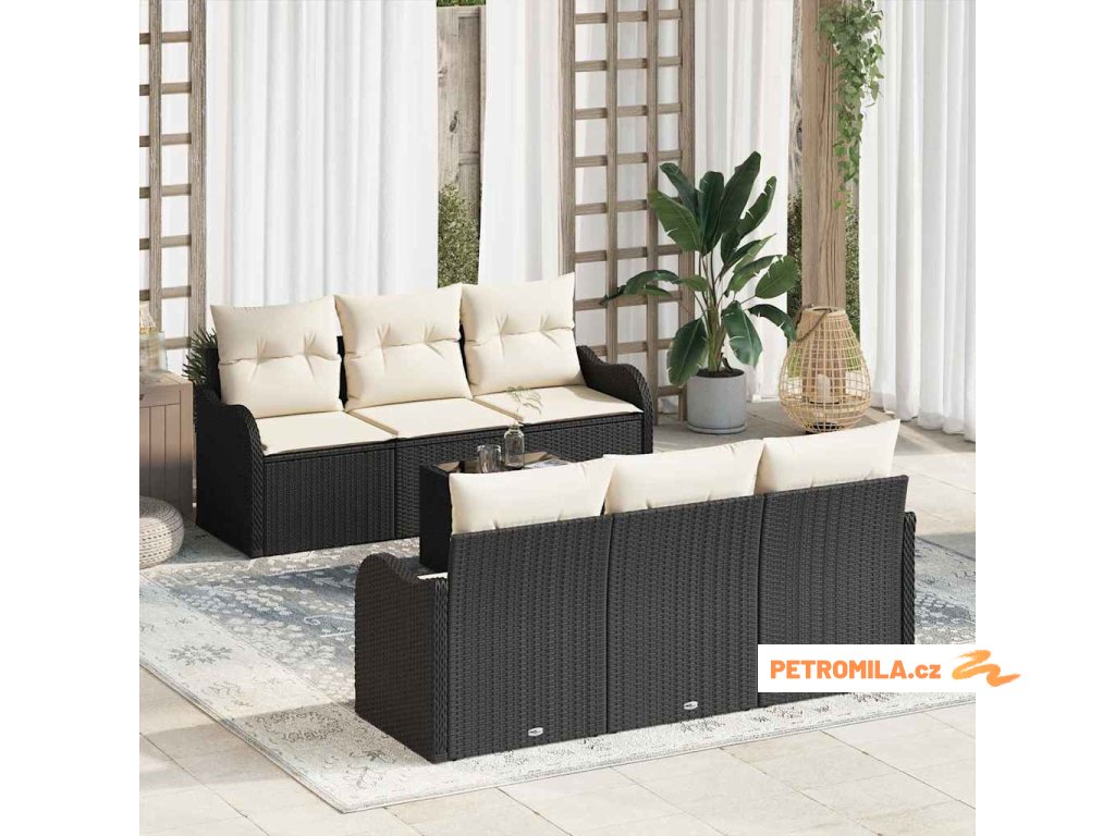 Sada zahradních pohovek 7 pcs Černá 55 x 55 x 37 cm Poly ratan