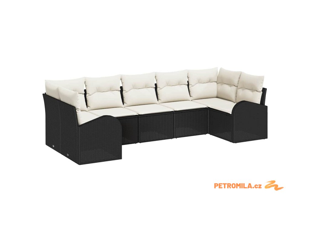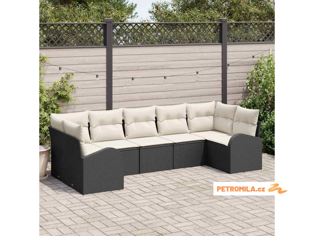 Sada zahradních pohovek 7 pcs Černá a bílá polyratan