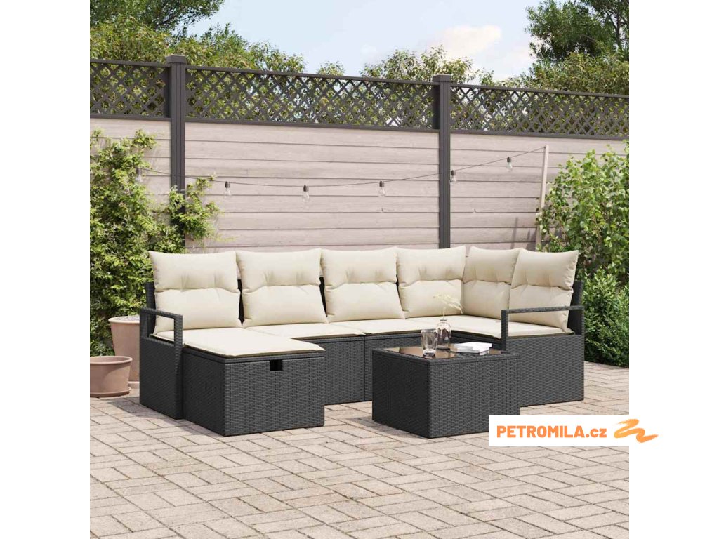 Sada zahradních pohovek 7 pcs Černá a krémová 232 x 122 x 85 cm
