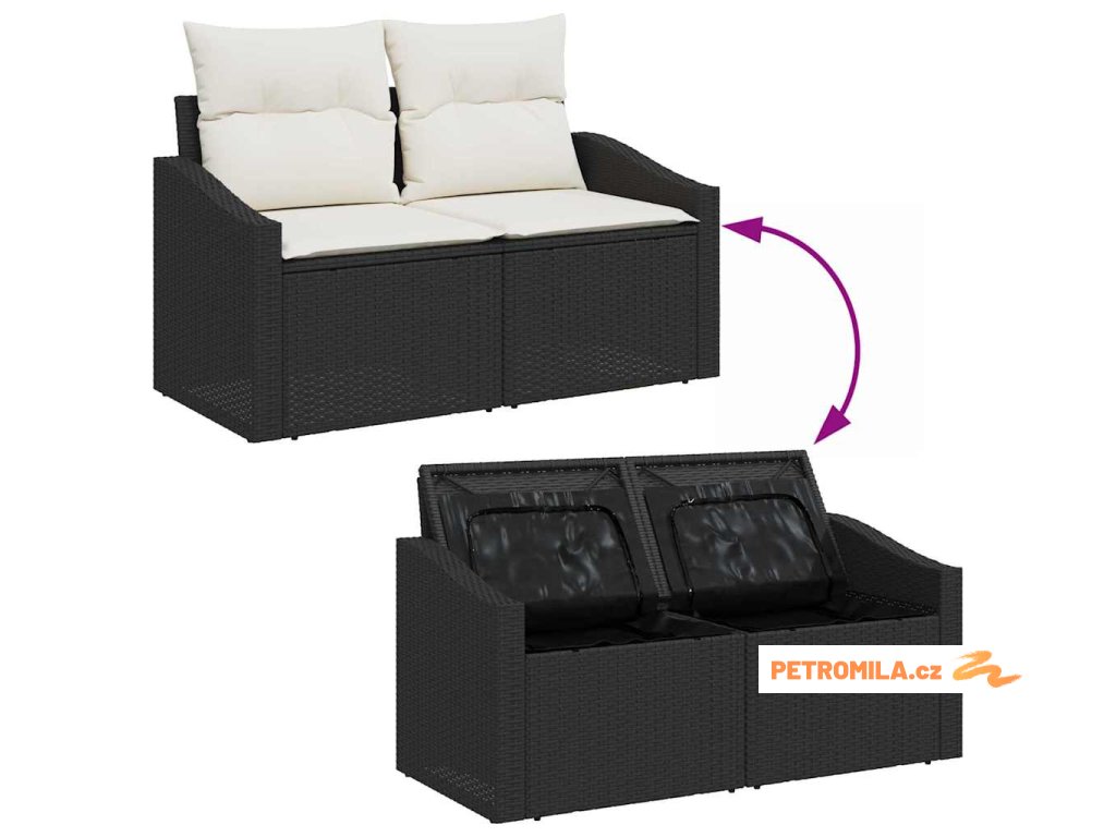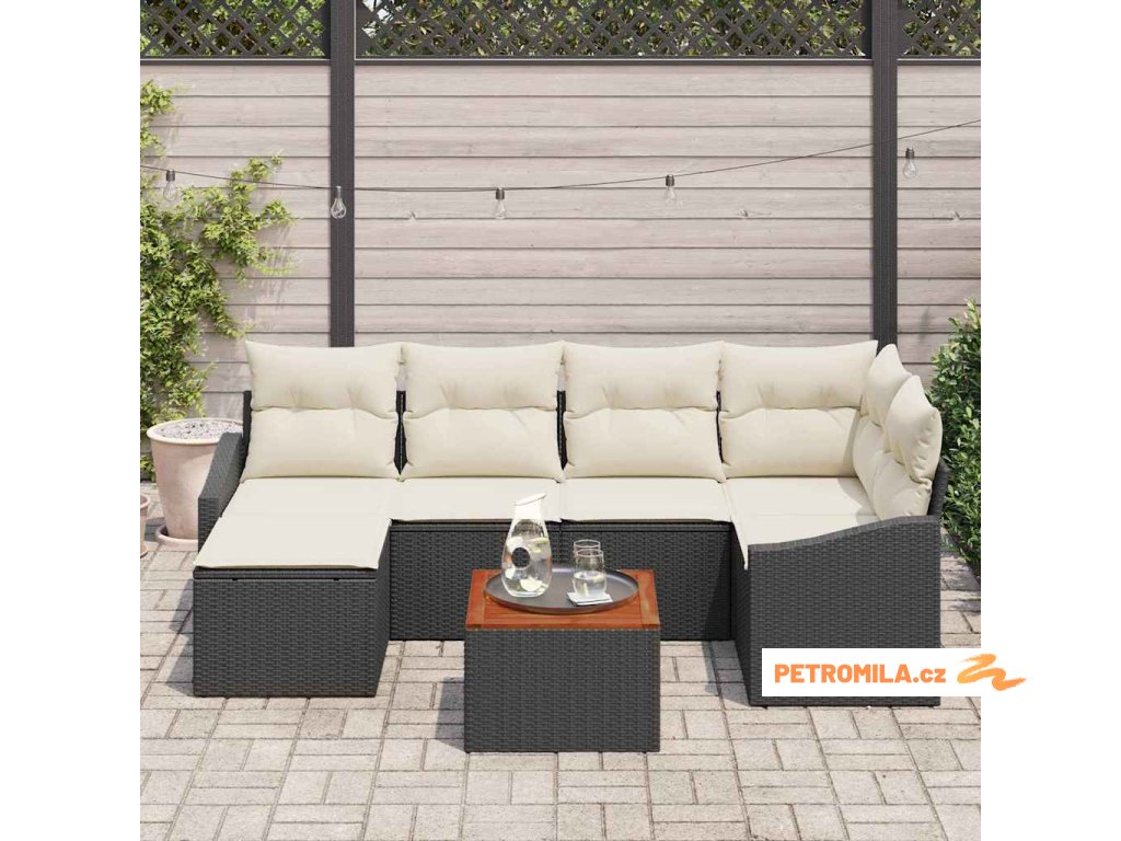 Sada zahradních pohovek 7 pcs Černá a krémová polyratan