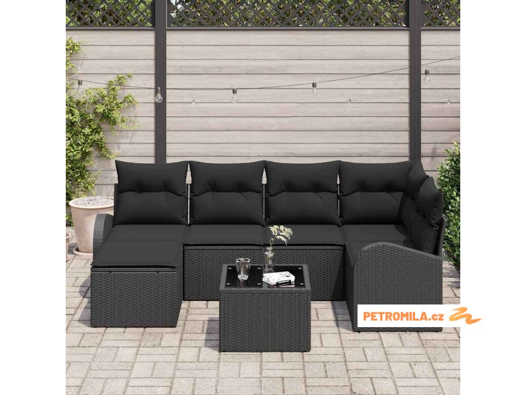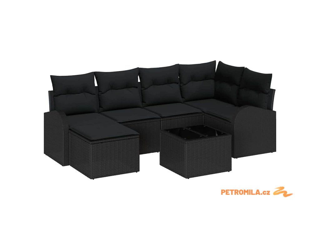 Sada zahradních pohovek 7 pcs Černá polyratan