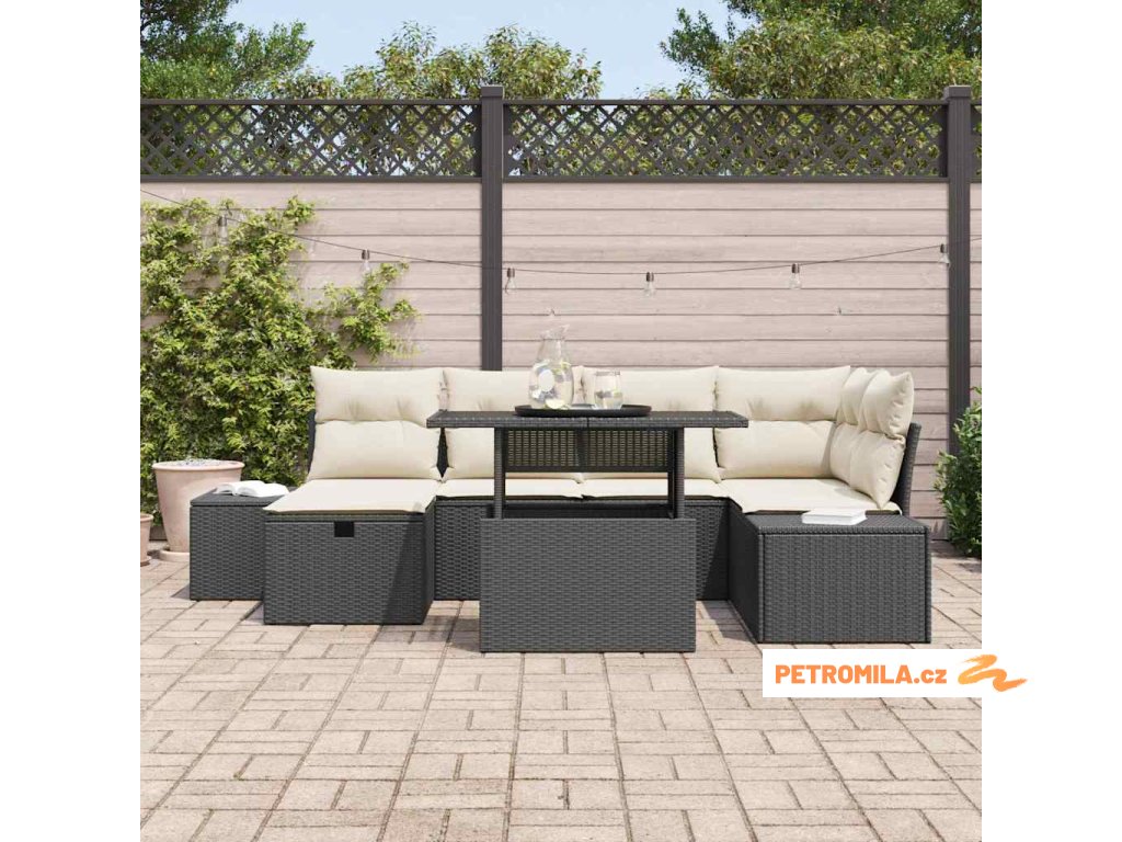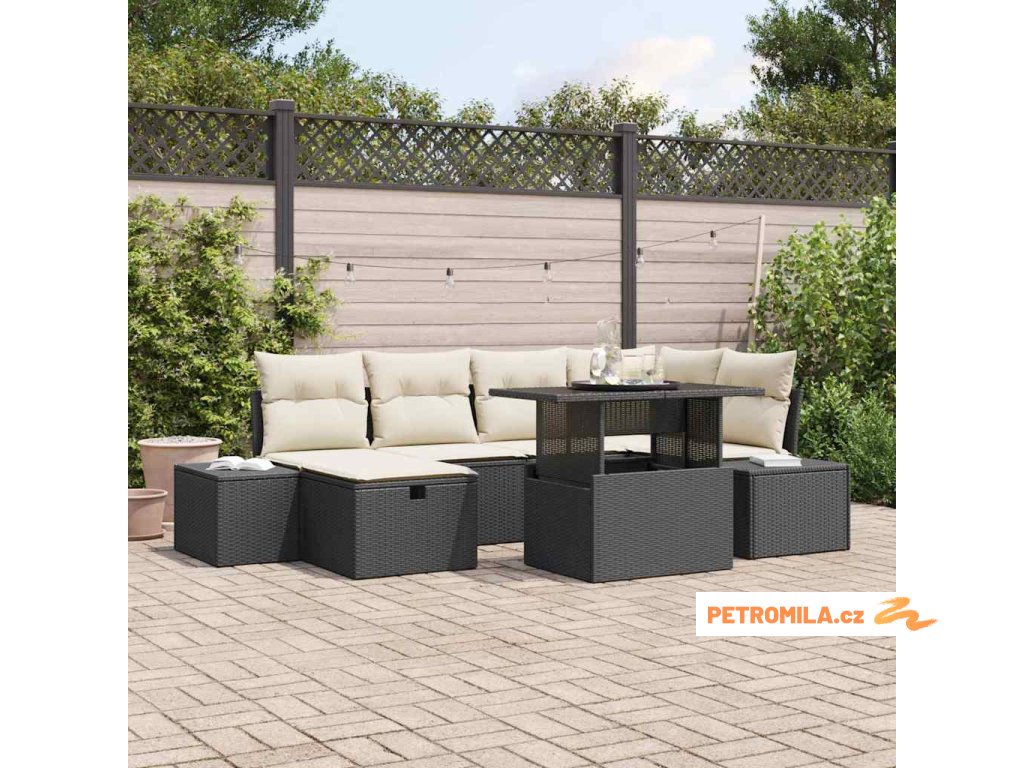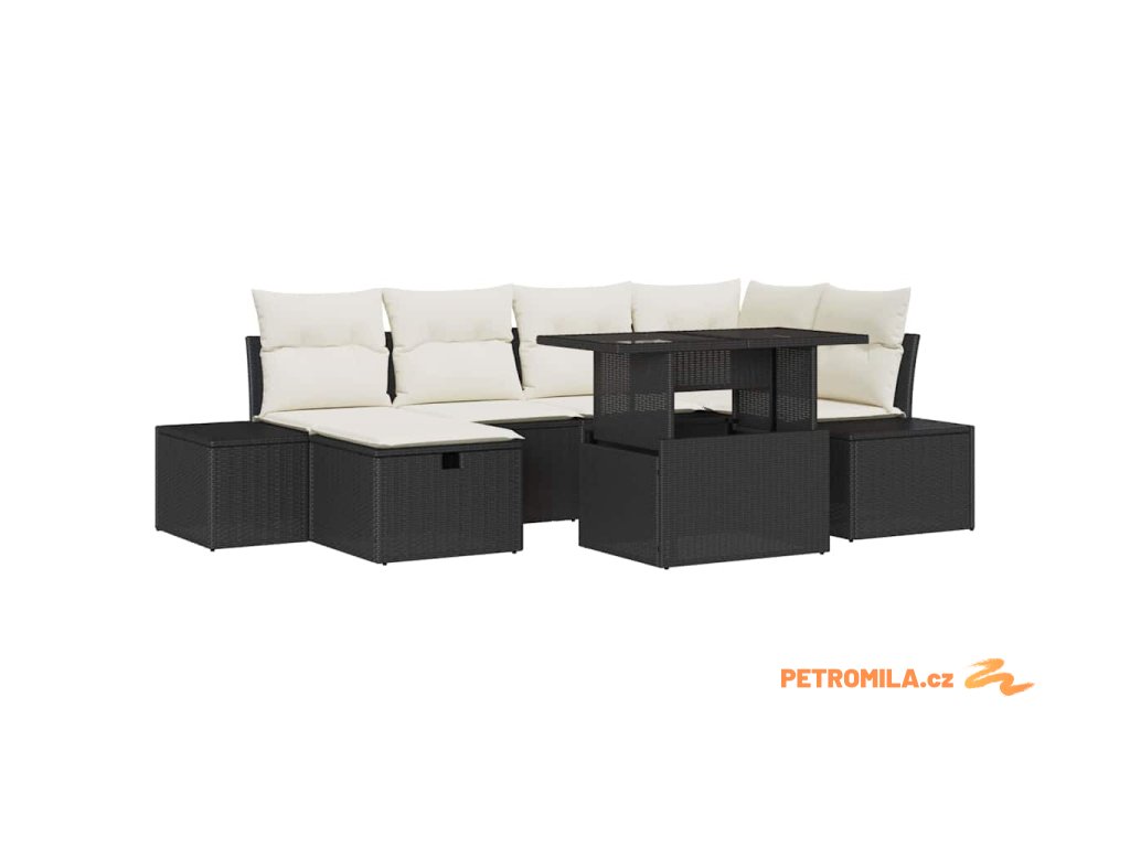 Sada zahradních pohovek 7 pcs Černá polyratan