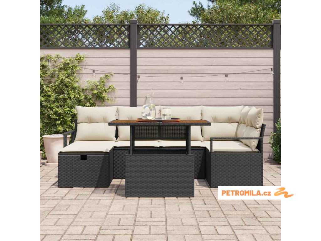 Sada zahradních pohovek s polštářem 6 pcs Černá Poly Ratan