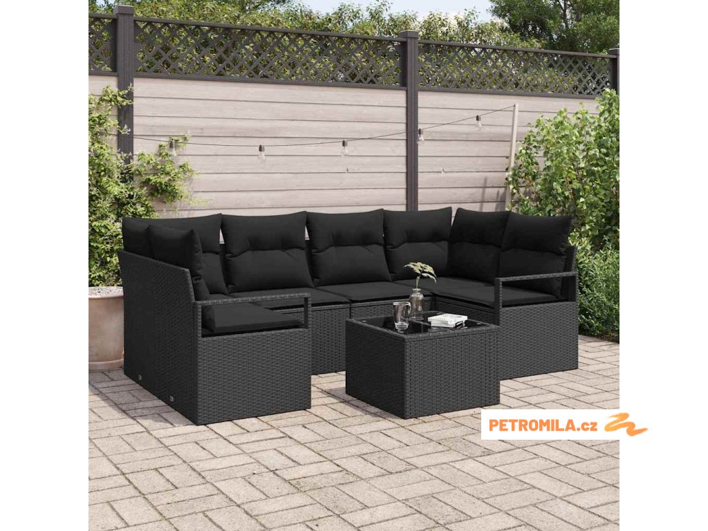 Sada zahradních pohovek 7 pcs Černá Polyratan a ocel a sklo