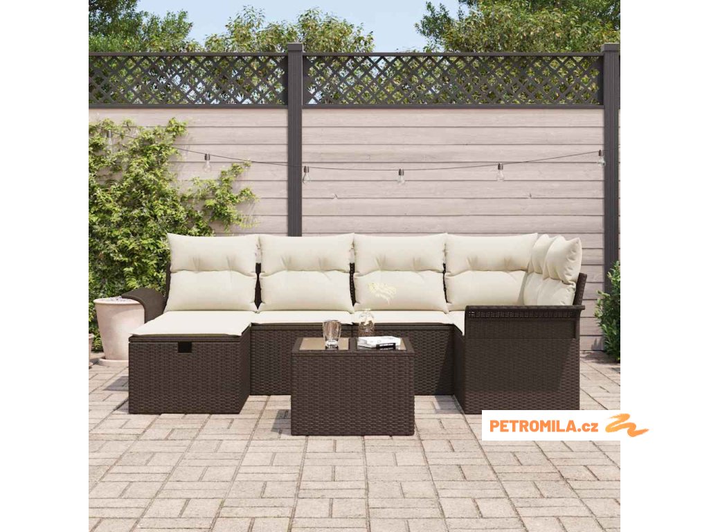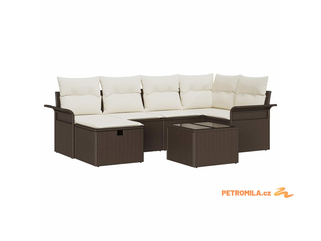 Sada zahradních pohovek 7 pcs Hnědá a krémová polyratan