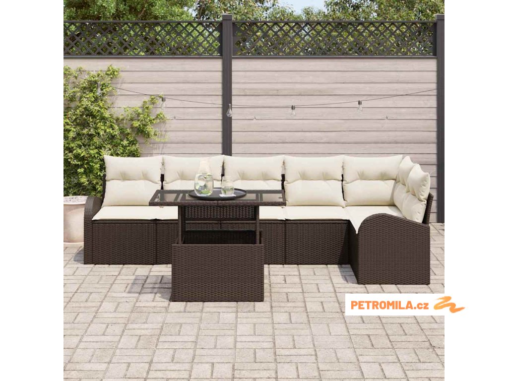 Sada zahradních pohovek 7 pcs Hnědá a krémová polyratan