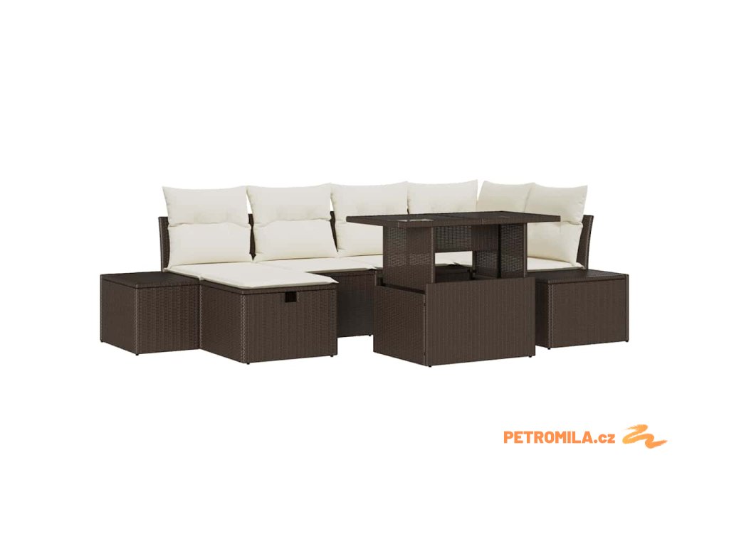 Sada zahradních pohovek 7 pcs Hnědá polyratan