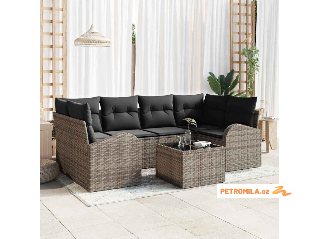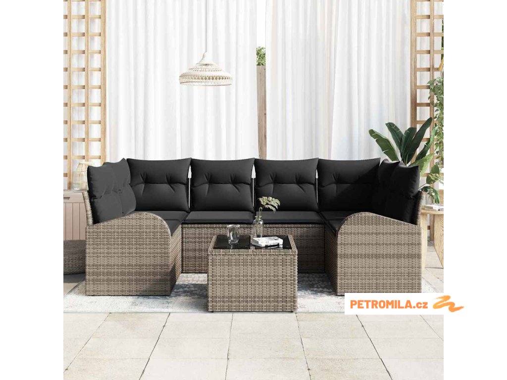 Sada zahradních pohovek 7 pcs Šedá 55 x 55 x 37 cm Poly ratan