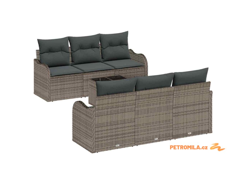 Sada zahradních pohovek 7 pcs Šedá 55 x 55 x 37 cm Poly ratan