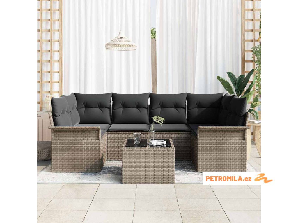Sada zahradních pohovek 7 pcs Šedá Polyratan a ocel a sklo