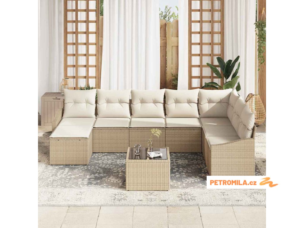 Sada zahradních pohovek 8 pcs Béžová a krémová polyratan