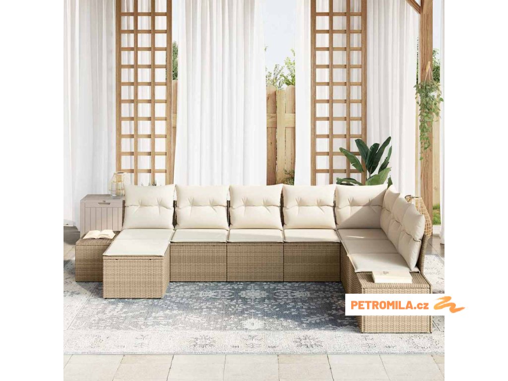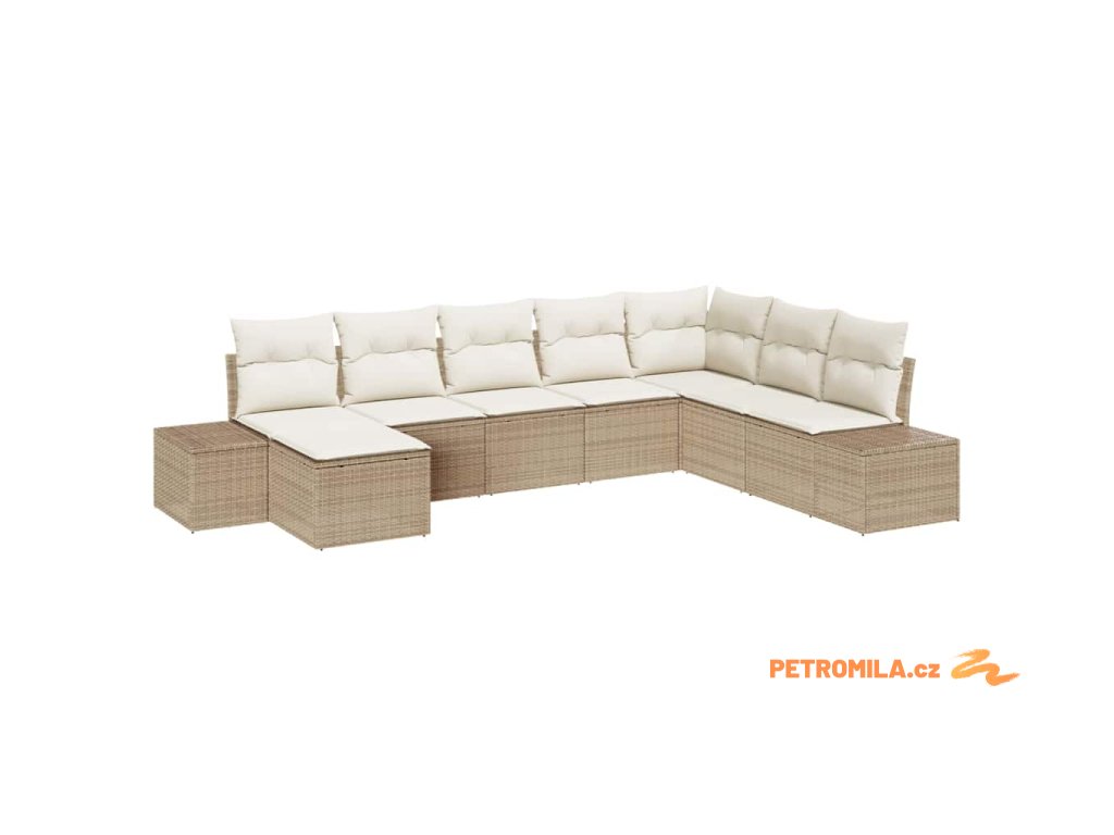 Sada zahradních pohovek s polštářem 8 pcs Béžová Poly ratan
